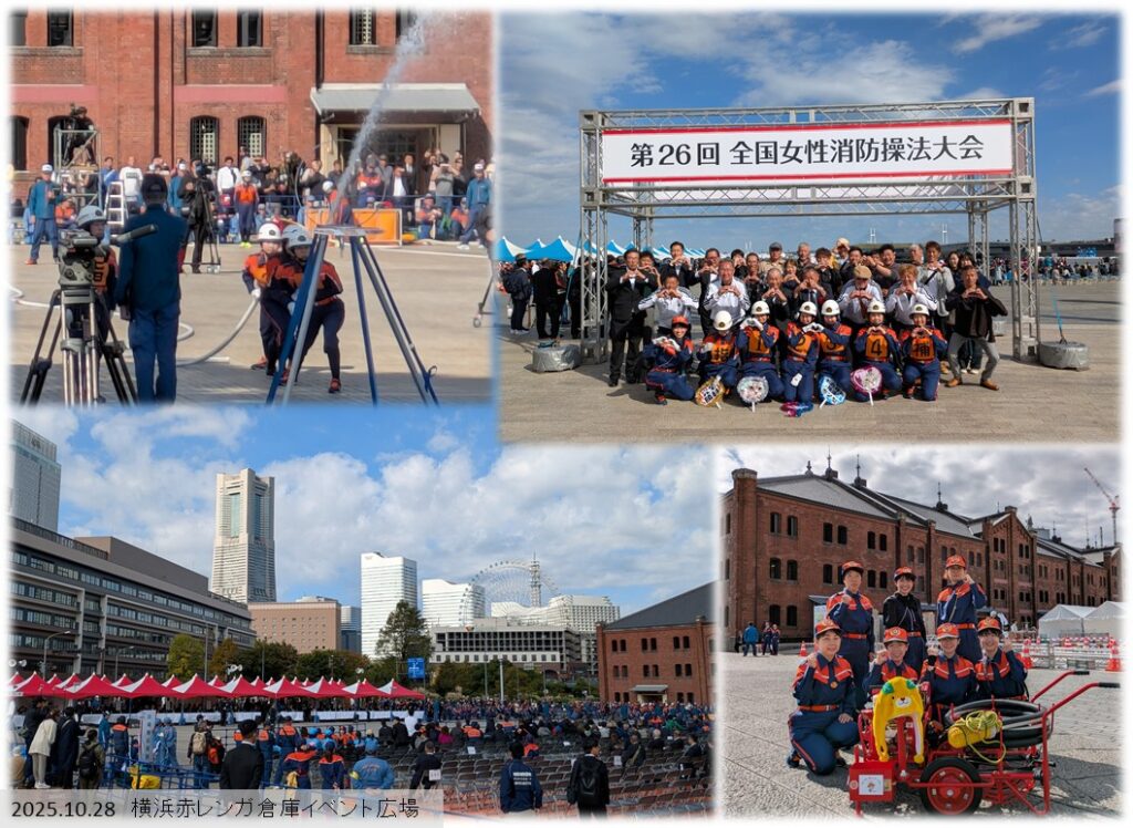 女性消防隊の消防技術向上と士気の高揚を図り、もって地域における消防活動の充実に寄与することを目的とした本大会。今年は、横浜赤レンガ倉庫イベント広場にて開催され、全国各地から44チームが集結し日頃の訓練成果を披露しました。